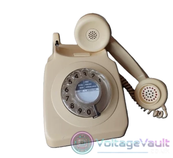 Step back in time with this classic vintage rotary dial telephone, finished in a stylish cream colour. A true retro piece of British design, this phone has been adapted to work with a standard UK BT landline socket, making it fully functional as well as a charming decorative item.